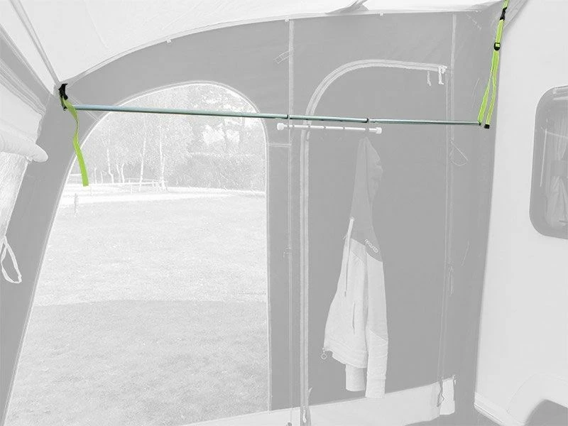 De Dometic Hanging Rail front to rear is een ophangrail (stang) die in de zijkant van de Dometic tent kan worden opgehangen. De Dometic tenten hebben een voorziening in de tenten zitten waar je deze ophangrail aan kunt bevestigen, dit zijn eenvoudige lussen. De ophangrail biedt een handige opbergruimte in een hangende vorm aan de zijkant van de tent, om eventueel handdoeken of andere accessoires aan op te hangen.