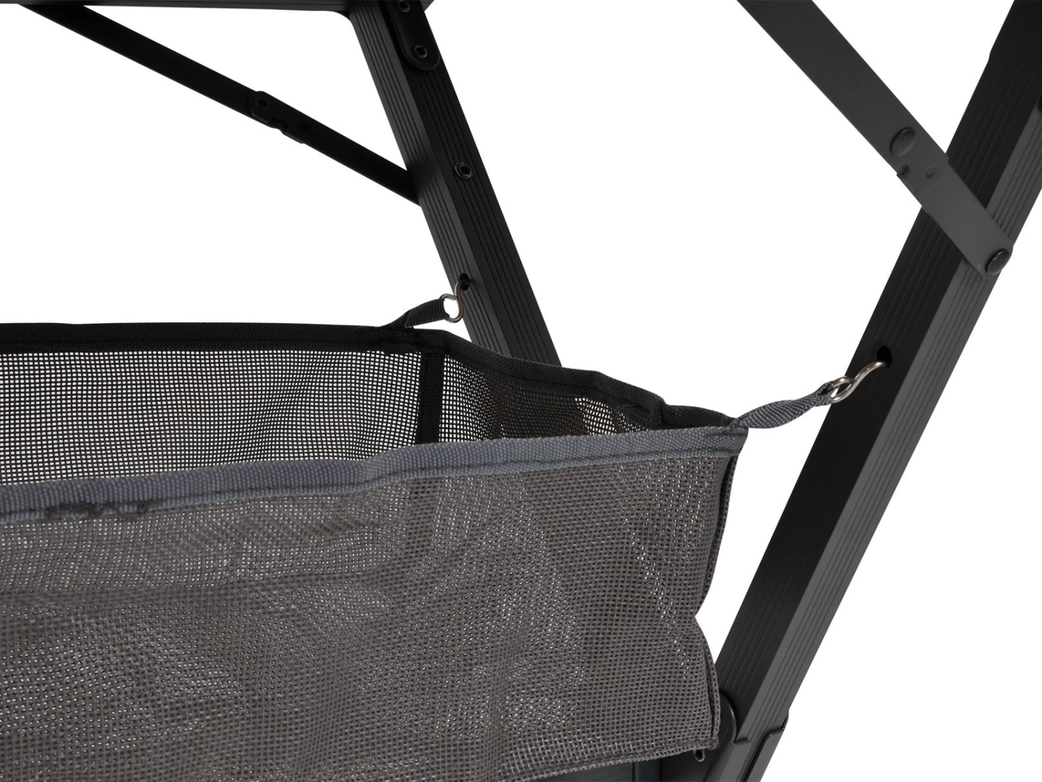 De Mendoza is een stijlvolle campingtafel die van alle gemakken voorzien is. Onder het tafelblad zit een groot opbergnet waar je je spullen in kunt opbergen. Zo heb je je spullen altijd bij de hand wanneer je aan tafel zit.