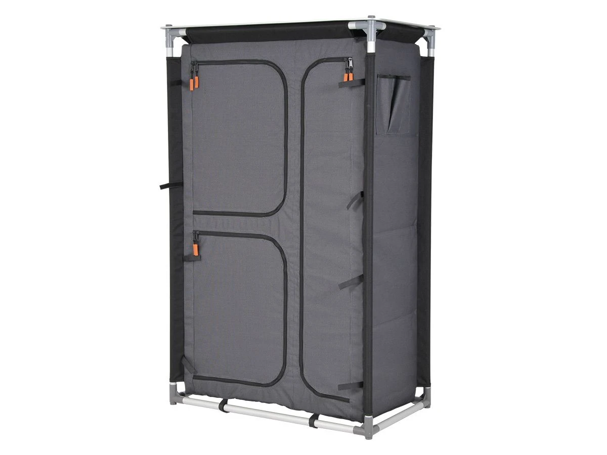 Als je twijfelt of je een hangkast of een kast met legplanken moet kiezen, dan is de Obelink Store de perfecte campingkast. De rechterkant van de kast is voorzien van 4 legplanken, maar als je liever een hanggedeelte wilt gebruiken dan kun je deze legplanken eruit halen en kun je de kledingroede gebruiken.