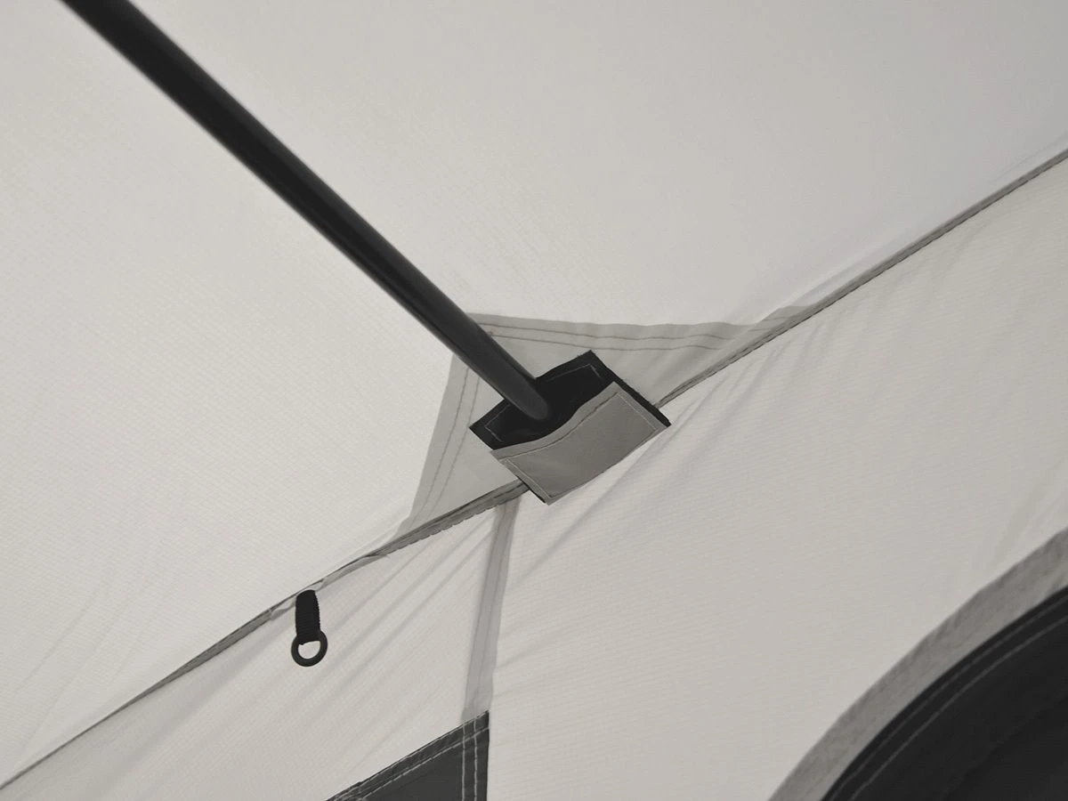 De voorwand van de Viera 260 bestaat uit twee panelen. Het linker paneel is volledig omhoog te ritsen en kan bovendien ook uitgezet worden als luifeltje met de meegelverde luifelstaanders, scheerlijnen en haringen. De grote ramen in de voor- en zijwand zijn van binnenuit af te dekken met een dichte afdekflap wanneer extra privacy gewenst is. Voor extra ventilatie is de bovenste helft van beide zijramen voorzien van horrengaas. Het horrengaas is van buitenaf te bedekken met een afdekflap. Beide zijdeuren zijn naast de dichte deur ook voorzien van een gaasdeur. Zo kun je op een warme zomerdag alles open gooien zonder dat er insecten binnen komen. Voor een mooie aansluiting tegen de caravan zijn de zijwanden voorzien van een dikke schuimrand om tocht en wind buiten te houden. Aan de onderzijde van het tentdoek zitten slikranden die onder het meegeleverde grondzeil gevouwen kunnen worden om regenwater en ongedierte zoveel mogelijk buiten de tent te houden.