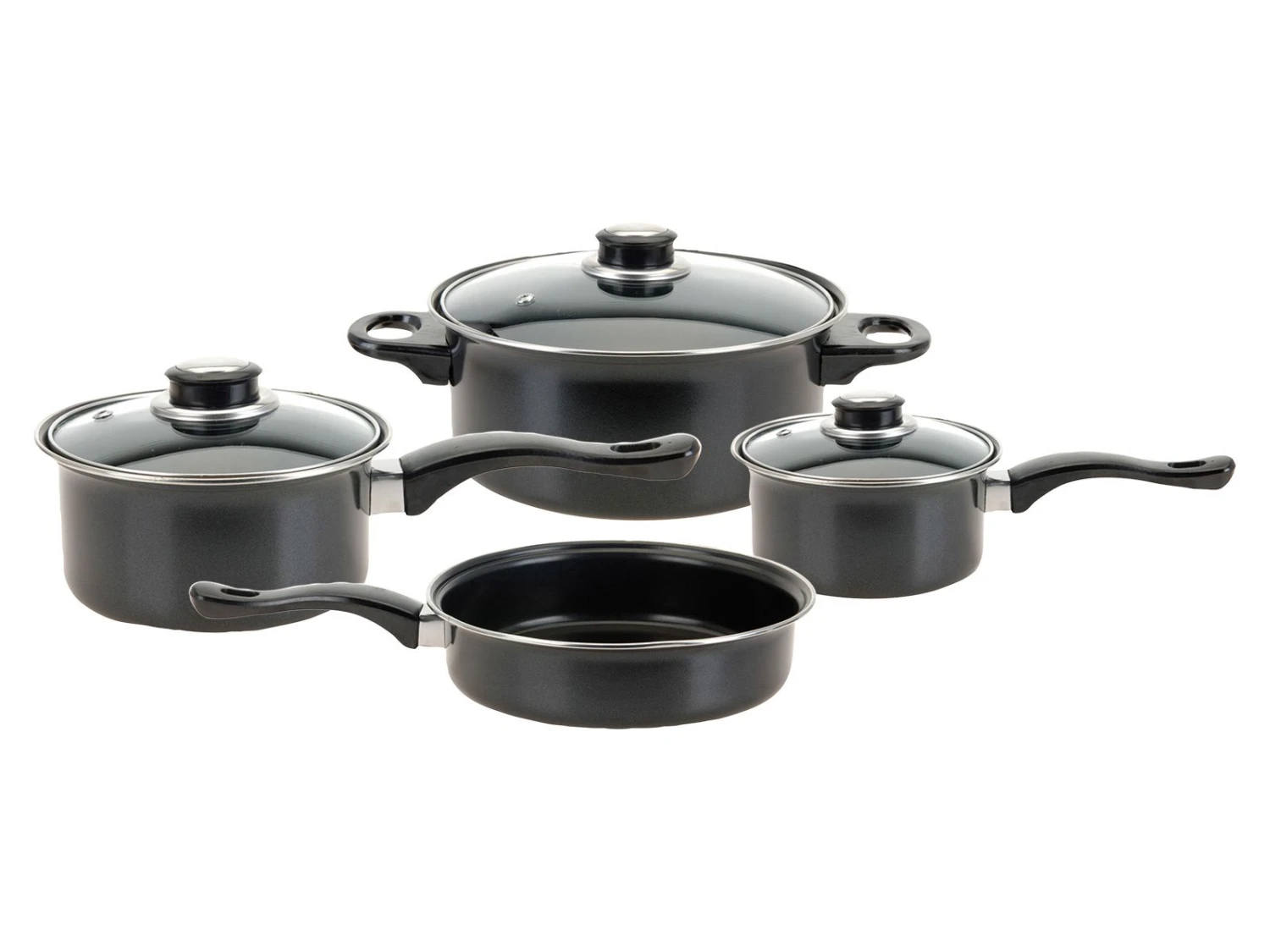 De Redcliffs pannenset is een eenvoudige pannenset geschikt voor gebruik op gas.