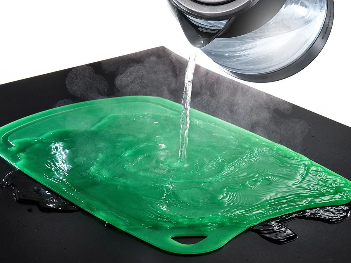 De snijplank is gemaakt van TPU, dit is een combinatie tussen hard plastic en siliconen. Het combineert de goede eigenschappen van beide materialen. Hierdoor is TPU flexibel maar wel vormvast, het kan niet breken, is antibacterieel, trekt geen stof aan en krast nauwelijks.
